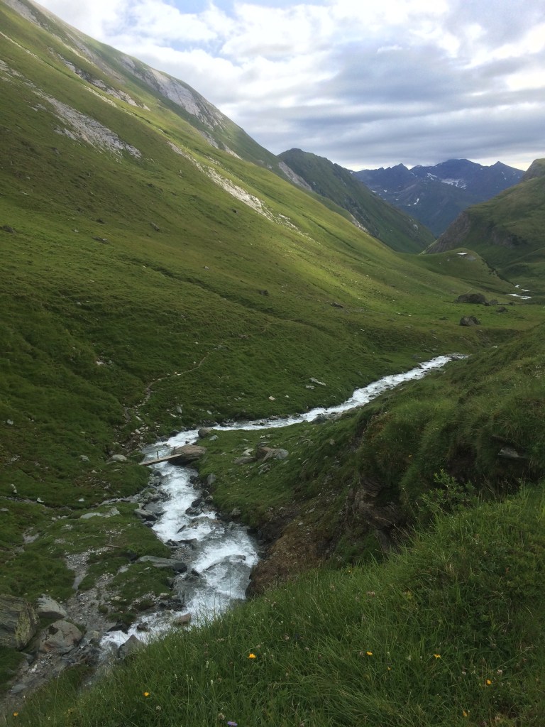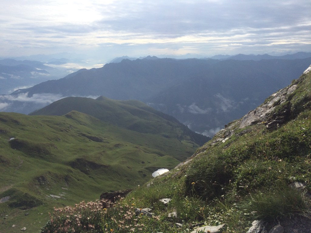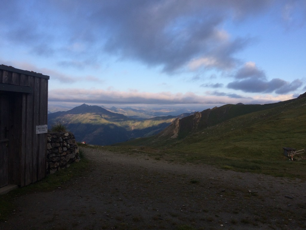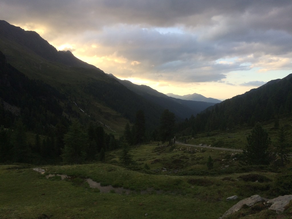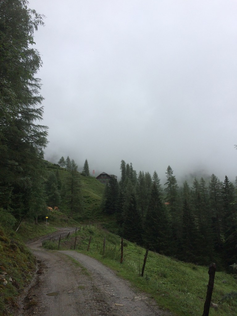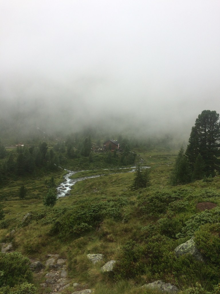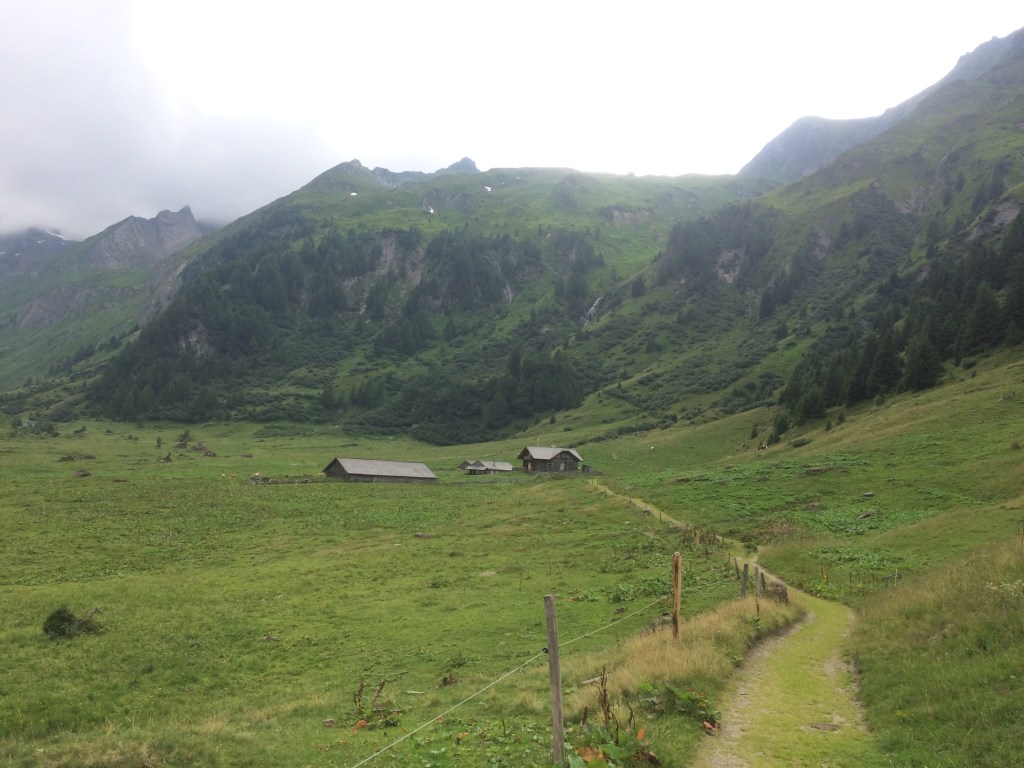 Der Aufstieg von Fusch erfolgt zunächst im Wald, bis man schließlich zu einer größeren Hochebene mit Weiden und Kühen gelangt. Von hier ist die Hütte bereits zu sehen, die letzten 300 Höhenmeter werden in engen Serpentinen am Hang zurückgelegt. Die Hütte belohnt einen mit einer malerischen Lage und leckerstem Essen, bevor es in frisch renovierte Lager zum schlafen geht. Für mich die schönste Hütte der Tour, auf der ich, weil das Statzerhaus belegt war, zwei Tage verbringe. Damit bleibt Zeit das schlechte Wetter zu überbrücken und in einer Regenpause Rettenzink und Imbachhorn mitzunehmen.