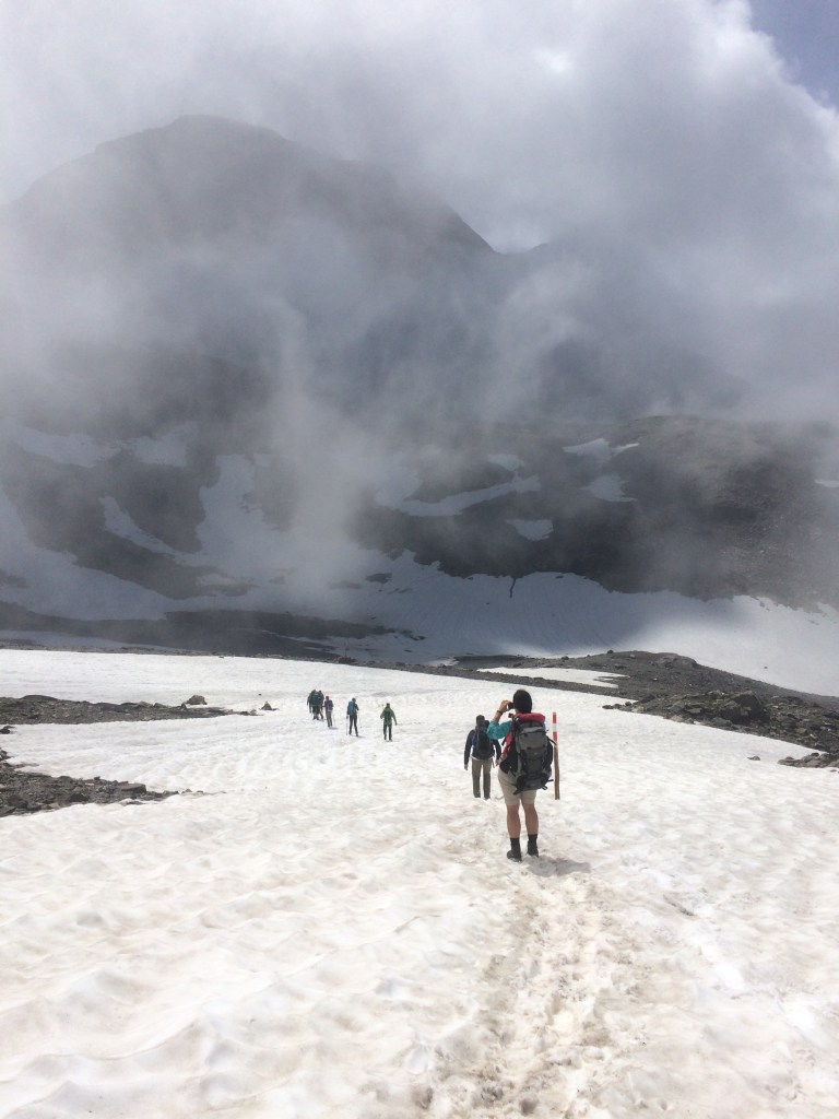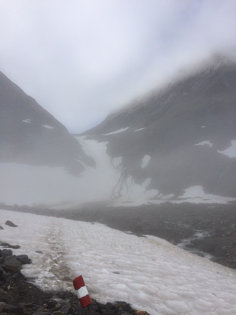 Von der Trauneralm geht es einen nach anfänglich flachem Weg steil den Hang hoch zur Pfandlscharte, der Schlüsselstelle der Tour. Auf der Hochebene angekommen offenbart sich bereits das beeindruckende Ausmaß der Scharte. Nach Überquerung des Schmelzflusses geht es westseitig mal auf dem Schneefeld, mal auf dem Schotterhang die Scharte hoch. Oben angekommen ist die Erleicherung groß, doch auch er Abstieg über das große Schneefeld, auf dem Klagenfurter Jubiläumsweg, sollte nicht unterschätzt werden. Hier offenbaren sich bereits die ersten Blicke auf den Großglockner sowie den unterhalb liegenden Stausee. Direkt angrenzend liegt das heutige Ziel: Das Glocknerhaus, zu dem es auf einfacherer werdendem Pfad hinab geht. Am Glocknerhaus selber findet man sich wegen der Hochalpstraße plötzlich in der Zivilisation auf 1500hm wieder.