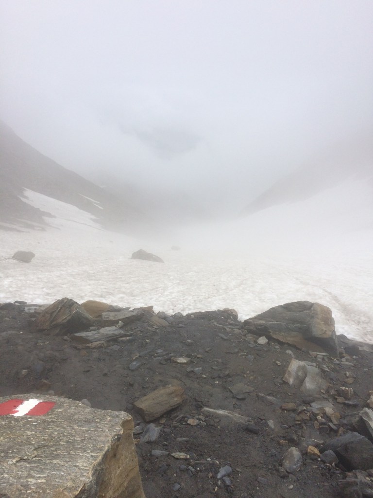 Von der Elberfelder Hütte geht über die Gößnitzscharte zur Lienzer Hütte. Passend zur letzten richtigen Tour bei strömendem Regen und Gewitter. Zur Scharte hinauf führt der Schottergruppe angemessen Schotter und Blockschutt, bis es von dort über einen Pfad hinunter zur Lienzer Hütte geht. Bei gutem Wetter kann man an dieser Stelle auch weiter nach Lienz wandern. Die Wanderung ist über die Forststraße einfach, die Kilometer bis zu Ankunft im Tal ziehen sich jedoch.