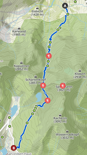 Etappe 2: Kärlingerhaus – Riemannshaus, 580hm, 5,97km, ca. 3h