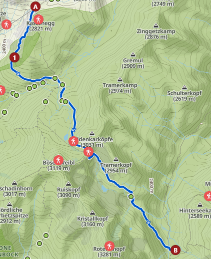 Etappe 8: Glorer Hütte – Elberfelder Hütte, 460hm Aufstieg, 770hm Abstieg, 9,5km, 5h