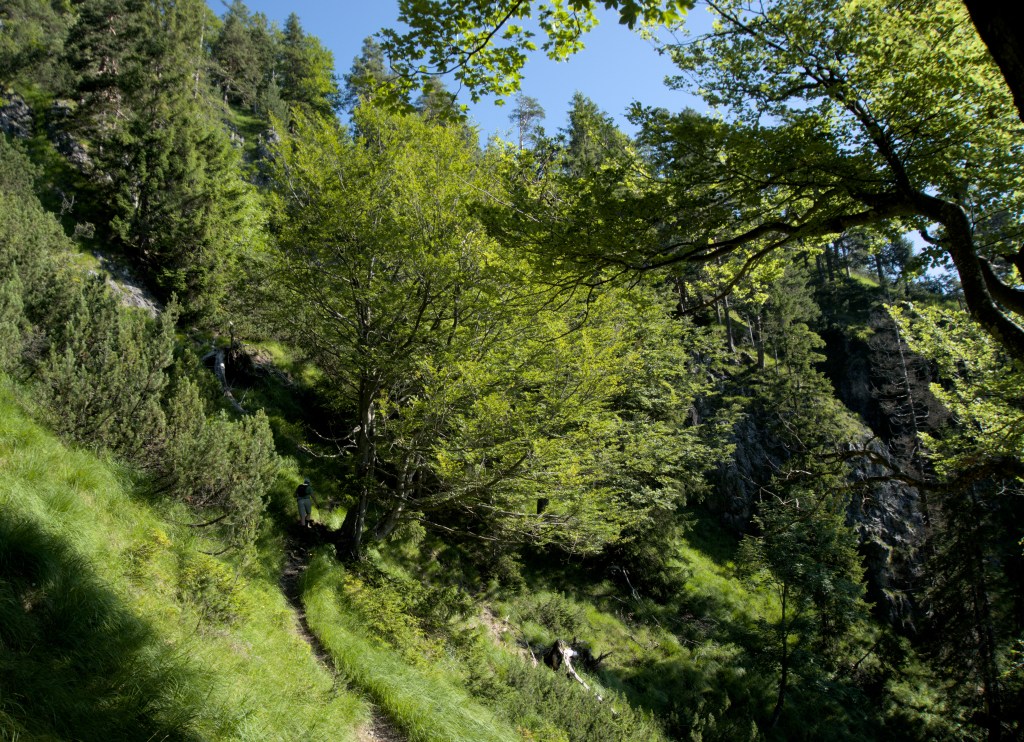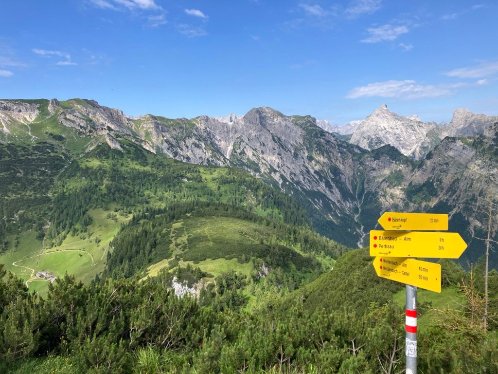 Ab dem Parkplatz geht es zunächst an der Skipiste vorbei auf einem kleinen Pfad in den Wald hinein. Dieser mündet schließlich auf einer Forststraße, der man bis zur Fortsetzung des Wanderweges auf der Skipiste folgt. Bei Regen oder nassem Wetter an den Vortagen gestaltet sich dieser Abschnitt etwas schlammig, auch weiter oben ist bei nassem Wetter auf den Felsen Vorsicht geboten. Auf halben Wege erreicht man die Bärenbadalm. Von hier sind es noch gute eineinhalb Stunden zum Gipfel. Zunächst geht es in Serpentinen weiter den Hang hoch, zum Schluss südlicherseits des Bergkammes bis zum Gipfel. Die Sicht läd zum Verweilen ein, ähnlich wie bei den vorherigen Touren ergibt sich eine perfekte rundum Sicht, nun von südlicher Seite her auf und um den Achensee. Hinunter geht es auf gleichem Wege.