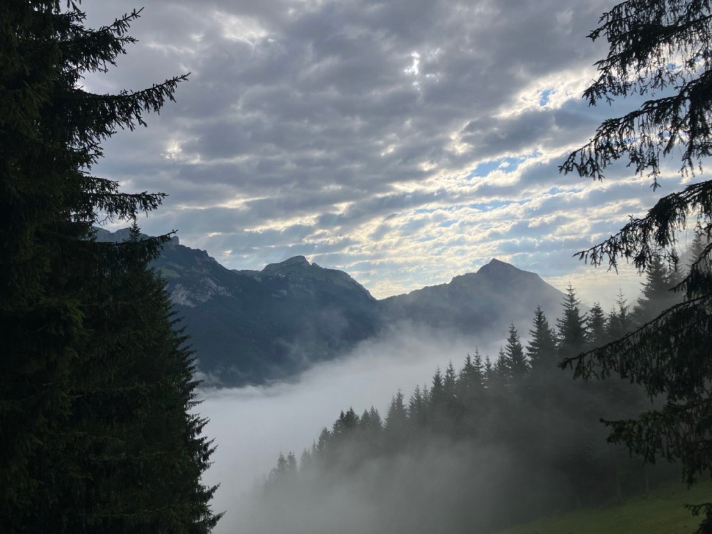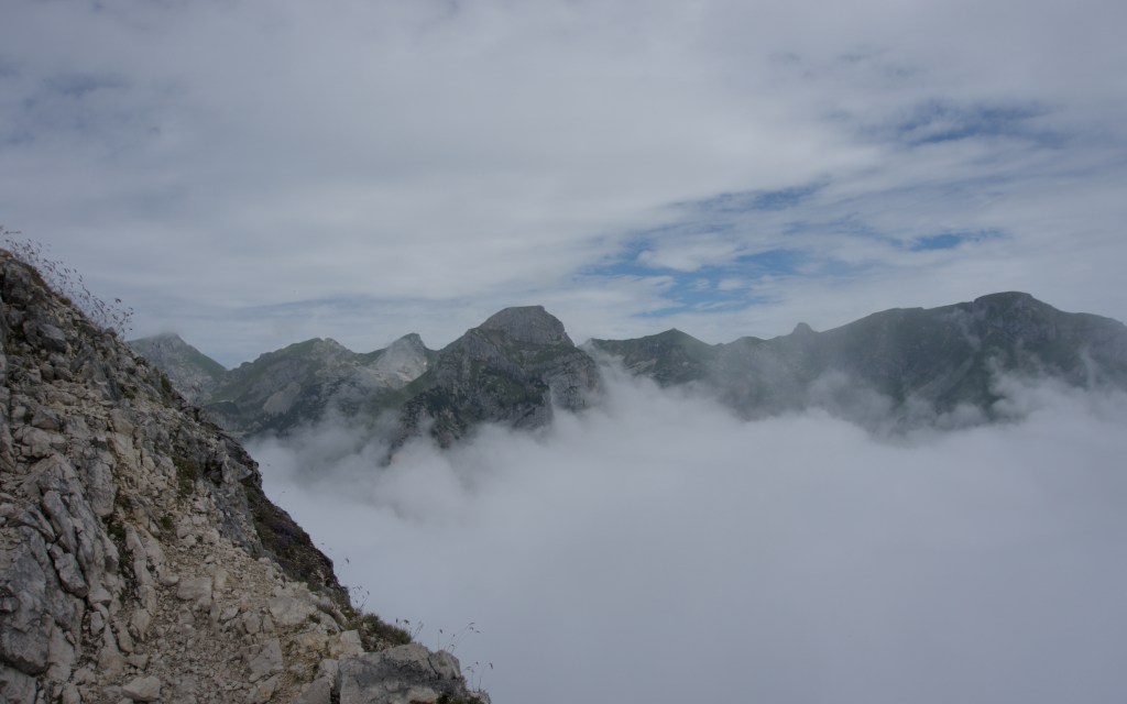 Zunächst geht es zur Talstation der Rofanseilbahn, von hier am Kasbach entlang dem Weg zur Erfurter Hütte folgend. Bei der Buchauer Alm zweigt der Weg zunächst auf einer Forststraße Richtung Astenau Alpe ab. Über einen kleinen Pfad am Hang kommt man dort nach ca. 2 1/2 Stunden an. Ab hier geht es die letzten 500hm zum Ebner Joch steil hinauf. Trotzdem der Weg in den Wolken hing offenbart sich oben ein toller Blick auf die Rofanspitzen und zum Alpenhauptkamm nach Süden. Hinab gehts zunächst auf dem gleichen Weg, wer mag kann noch einen Abstecher zur 200m niedrigeren Kichenspitz machen, bevor man dem H.-Huber-Weg Richtung Erfurter Hütte durch Lawinenzäune und teils etwas ausgesetztem Gelände folgt. Kurz hinter der Buchenauer Alm gelangt man wieder zum Kasbach und steigt zur Talstation der Rofanseilbahn ab.